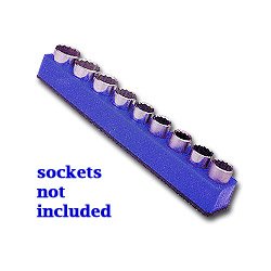 1/2 In Drive Shallow / Deep Socket Organizer w/ Magnetic Base - Neon BlueFeatures: 1/2" drive organizer will store both shallow & deep sockets, SAE & metric sizes. Accommodates 3/8 thru 7/8 SAE and/or 10 thru 19mm. Magnetic base holds tools in holder & holder to work surface. Strong enough to hold upside down. Magnetic material is non-transferable. Magnetic material will not magnetize tools or damage on-board automotive computers & other related circuitry. Fuel/oil resistant non-stick high impact plastic. Fits most tool boxes & drawers. Easily tranferable from tool drawer to work area.