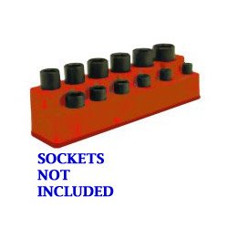 3/8 In Drive Impact Deep Socket Organizer w/ Magnetic Base - Rocket Red 12 hole design for semi-deep & deep chrome or impact sockets. Accommodates 3/8 thru 3/4 SAE. Magnetic base holds tools in holder & holder to work surface. Strong enough to hold upside down. Magnetic material is non-transferable. Magnetic material will not magnetize tools or damage on-board automotive computers & other related circuitry. Fuel/oil resistant non-stick high impact plastic. Fits most tool boxes & drawers. Easily tranferable from tool drawer to work area.